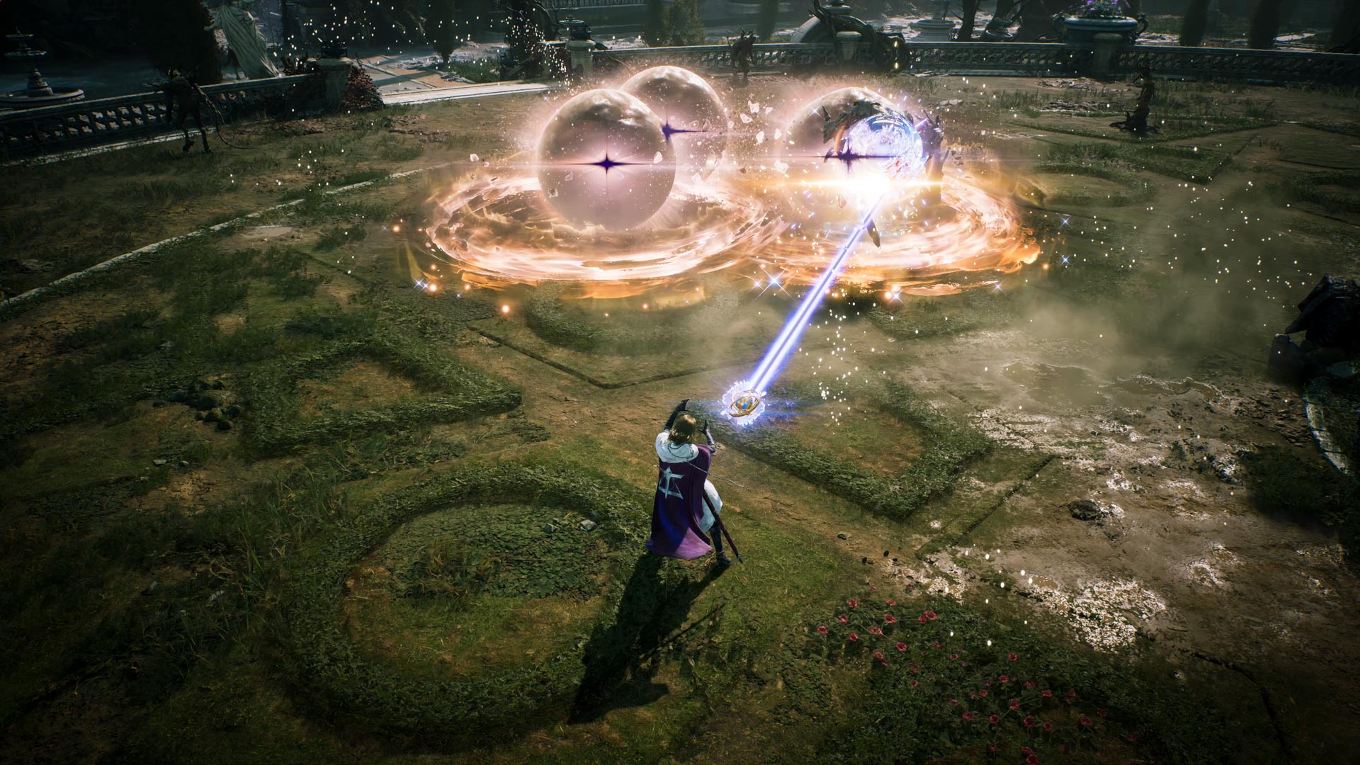 Skill effects vary depending on the placement and utilization of the spheres, enabling various combat scenarios from providing ally shields to suppressing enemies.